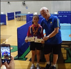 The six then played 3 knock out matches between them. Young Chloe Cheng won against retiree Spencer Lam 3-1. Esfand Sangsari overcame Marek Fedorovic 3-1 while Julie Wang beat Francis Seo 3-0. All the three winners advanced into a pool of 3 final.